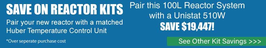 100L Squatty, Low Profile, glass reactor system with 400mm flange. 100L glass reactor system on our innovative Kwik Mount support frame. Lexan safety shields surround the reactor with the front panel hinged for easy access.