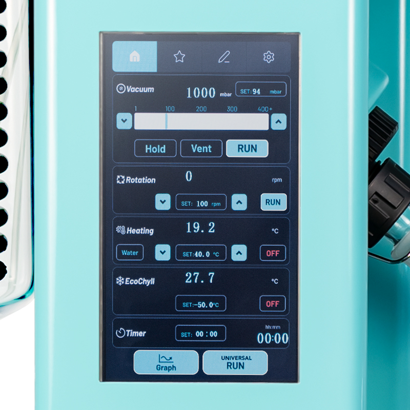 Ecodyst’s hydrogen is a high performance, smart self-cooling and small footprint rotary evaporator that’s eco-friendly, energy-efficient, and sustainable. It sets a new benchmark for rotovaps without using glycol, dry ice or water. This contemporary rotovap has an extremely efficient built-in condenser that enables faster rates of evaporation and boost productivity.