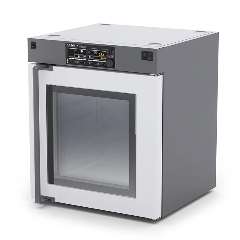 The models in the IKA Oven 125 dry series are powerful drying cabinets for temperature regulation, drying, ageing and heating tasks. Rapid heating and exact temperature regulation guarantee reproducible results in industrial laboratories, schools and universities, research, quality control or science. Thanks to its high-quality insulation, the device has a very large interior of 125 l in relation to its total volume. This structure also reduces odor emissions and operating costs and ensures excellent temperature uniformity.