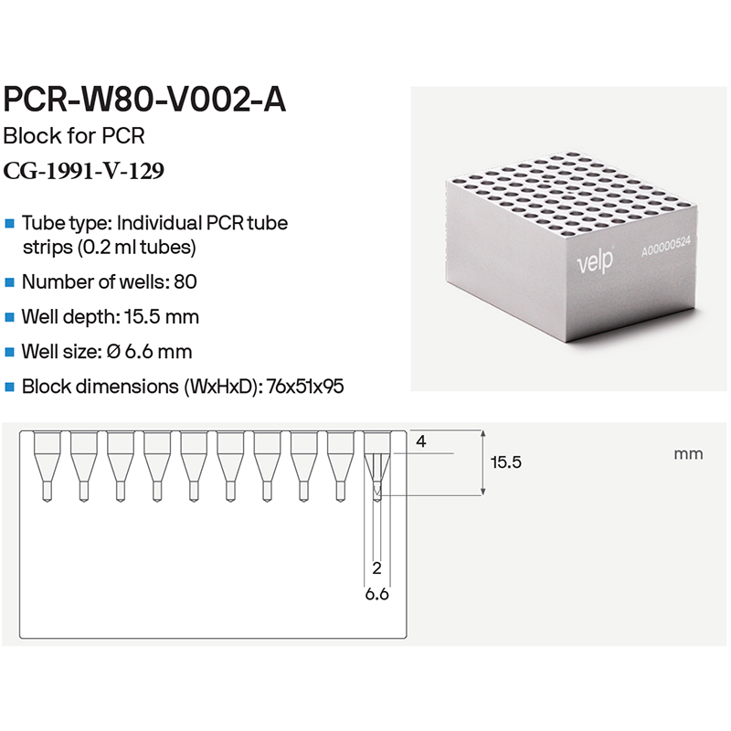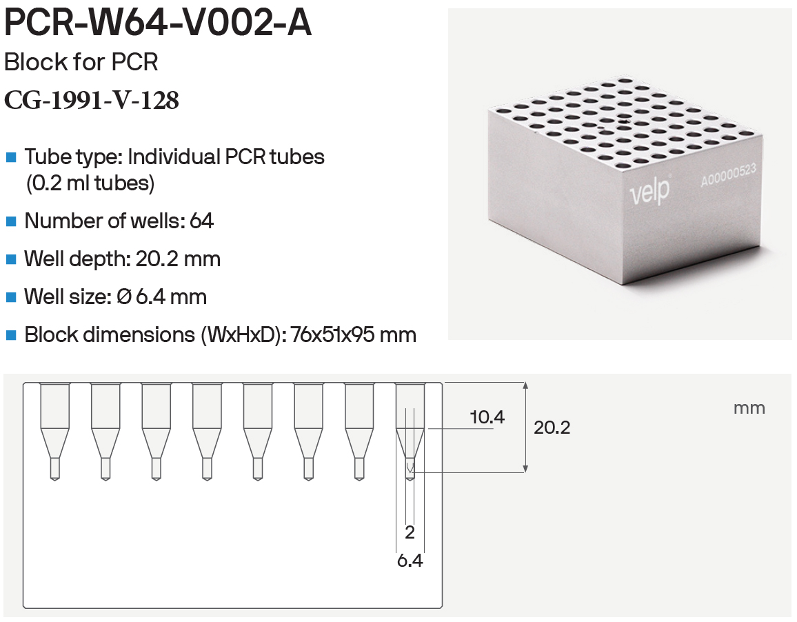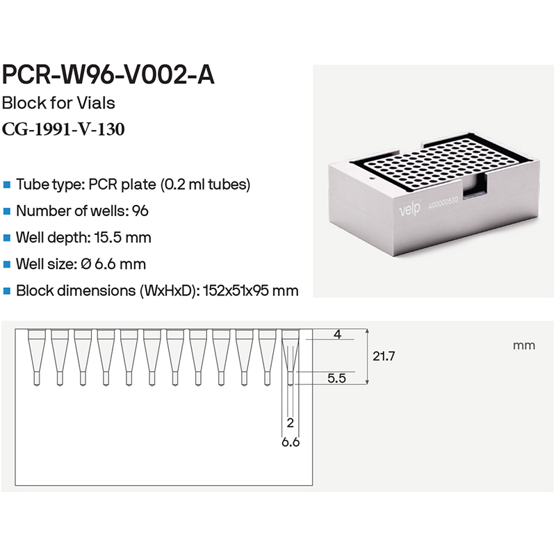ECODRYBLOCK BLOCKS FOR 0.2ML PCR TUBES, STRIPS, PLATES, VELP