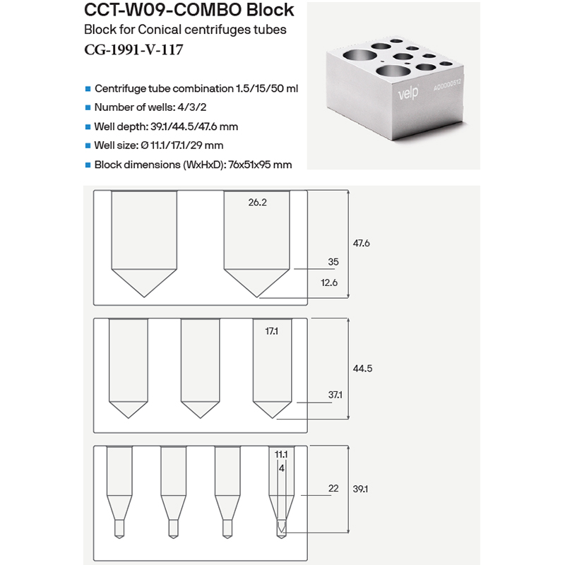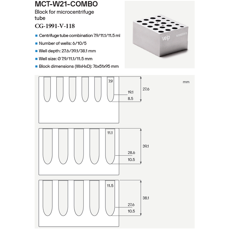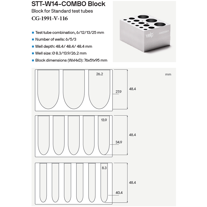 ECODRYBLOCK COMBINATION BLOCKS FOR TEST TUBES, MICROCENTRIFUGE TUBES, AND CENTRIFUGE TUBES, VELP