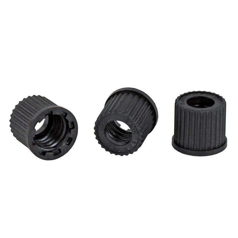Open top cap for use with GL screw threads. The cap combined with the CG-197 sealing ring will accommodate tubing of the listed diameter. Cap is made from PPS (polyphenylsiloxan) and will withstand temperatures up to 250°C.
