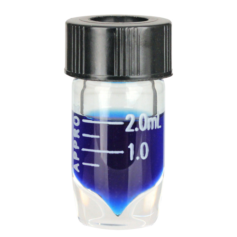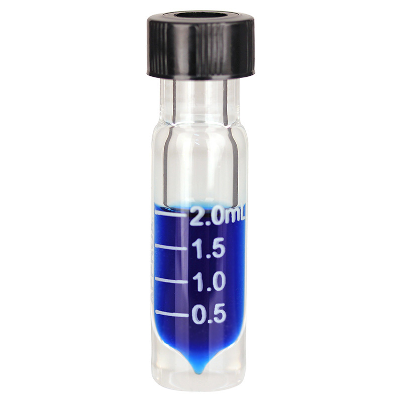 2mL Clear Graduated High Recovery Vial with 15-415 Black Phenolic Open Top Cap and Red PTFE/Silicone Septa, 16mm OD x 58mm Height