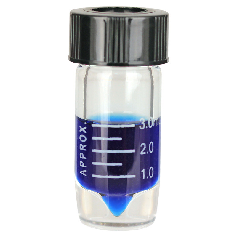 3mL Clear Graduated High Recovery Vial with 20-400 Black Phenolic Open Top Cap and Gray PTFE/Silicone Septa, 20mm OD x 46mm Height