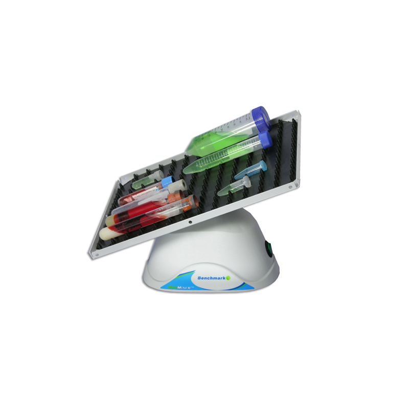Despite a modest footprint of 14.5 x 13″, the MyTemp™ incubators feature large internal chambers, capable of storing flasks and bottles up to 2 Liters. In addition, the incubators include two adjustable shelves and an internal outlet for powering small shakers, rockers and other instrumentation. A mini nutating rocker (supplied with both flat and dimpled mats) is available for agitation of samples during incubation.
