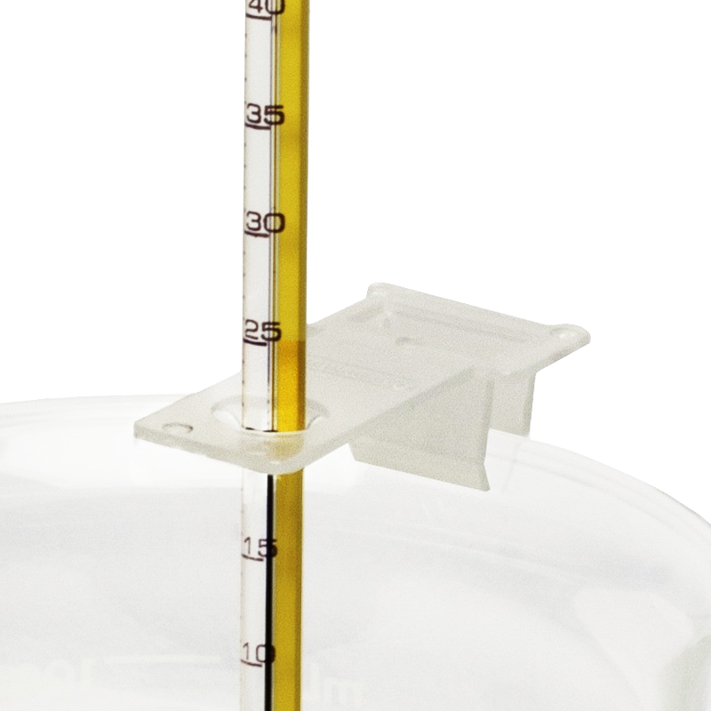 This molded polypropylene thermometer holder clips onto beakers and other vessels and can hold a thermometer from 5 to 11mm OD. Sold in packages of 3.