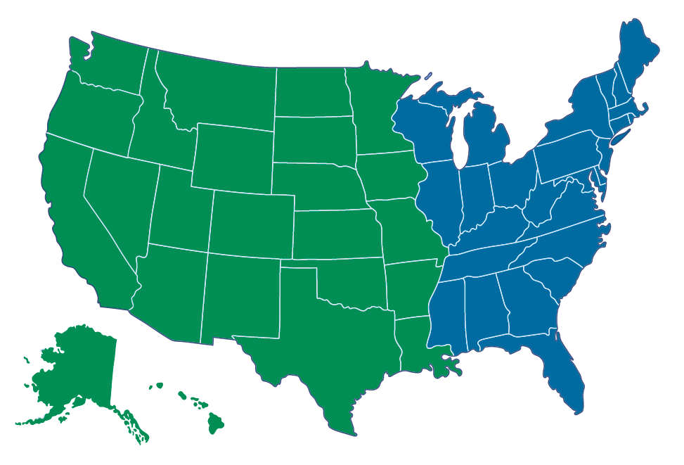 Alaska, Arizona, California, Colorado, Hawaii, Iowa, Kansas, Louisiana, Minnesota, Missouri, Montana, Nebraska, New Mexico, North Dakota, Oklahoma, Oregon, South Dakota, Texas, Utah, Washington |